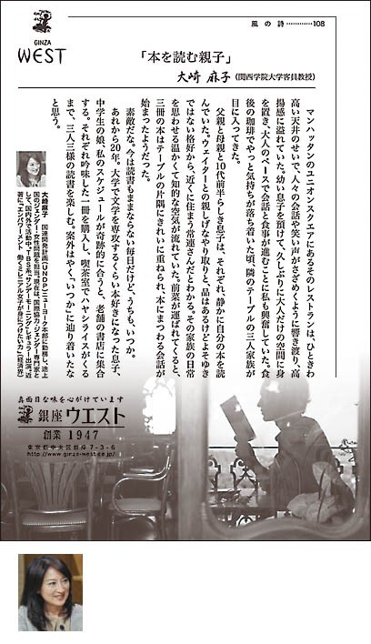 2009年4月から月刊『文藝春秋』にて洋菓子舗ウエストが提供する、著名人によるショートエッセイ「風の詩」がスタートいたしました。